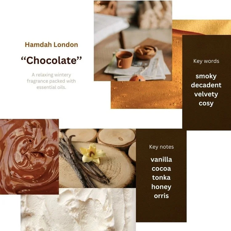 From the cobbled streets of Brussels to candlelight-lit parlors, Chocolate is indulgence transformed into fragrance. Cocoa blends with smoky tonka, orris, honey, and vanilla, creating a gourmand candle that warms the spirit and soothes the senses. A love letter to winter evenings and sweet memories.